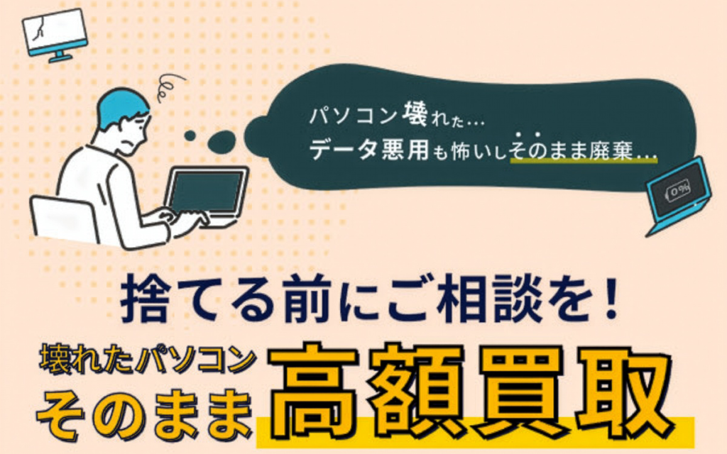 パソコンは壊れているものでも、状態によってはお買取可能です。まずはお気軽にご相談ください。