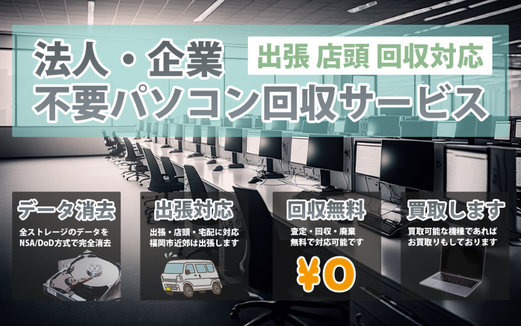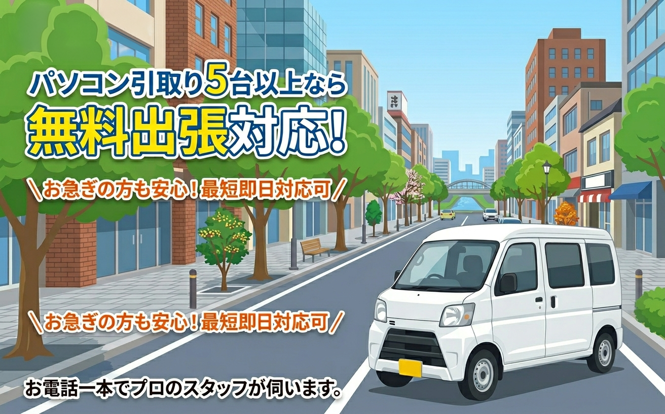 5台以上で福岡市内・近郊は無料出張回収に対応。